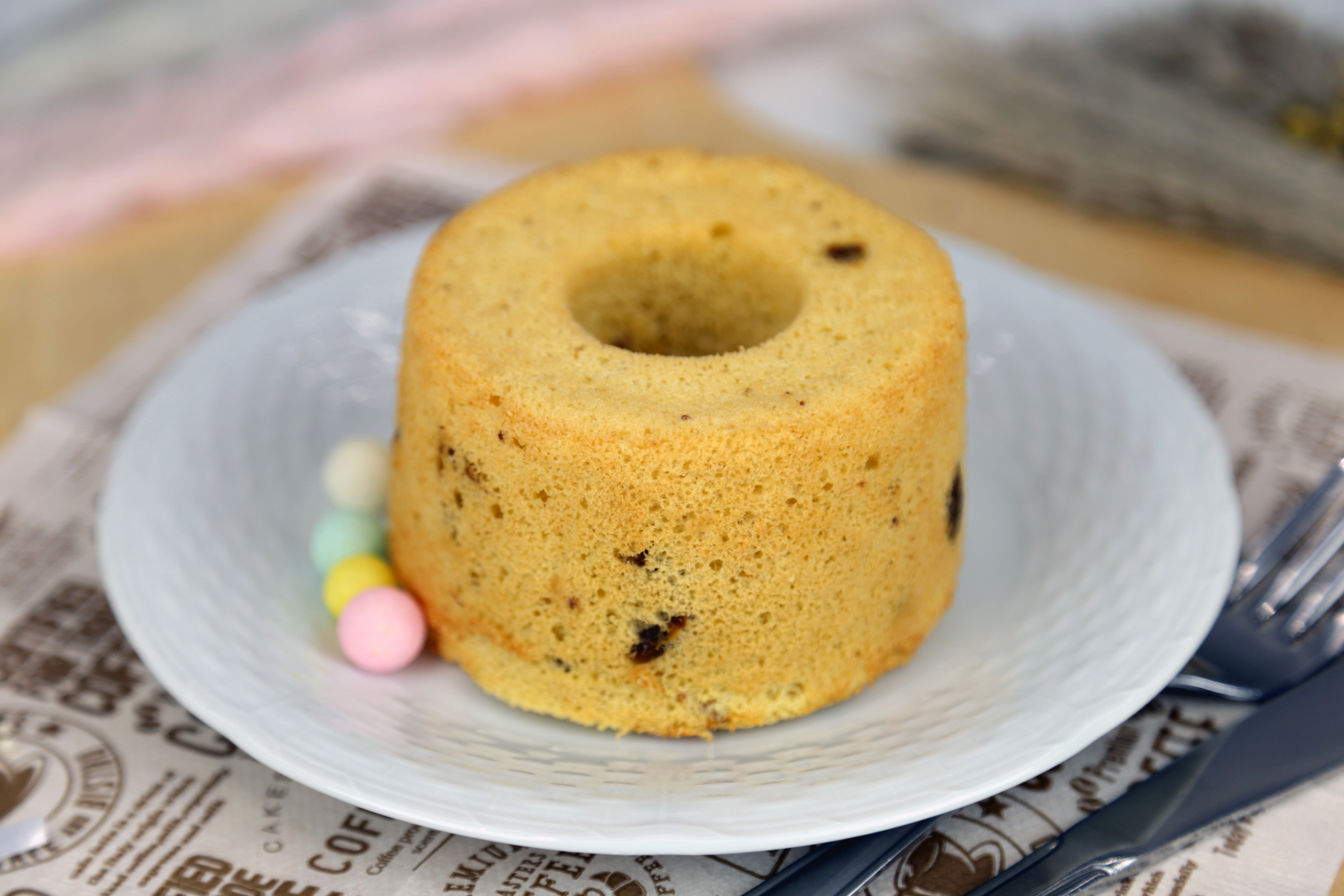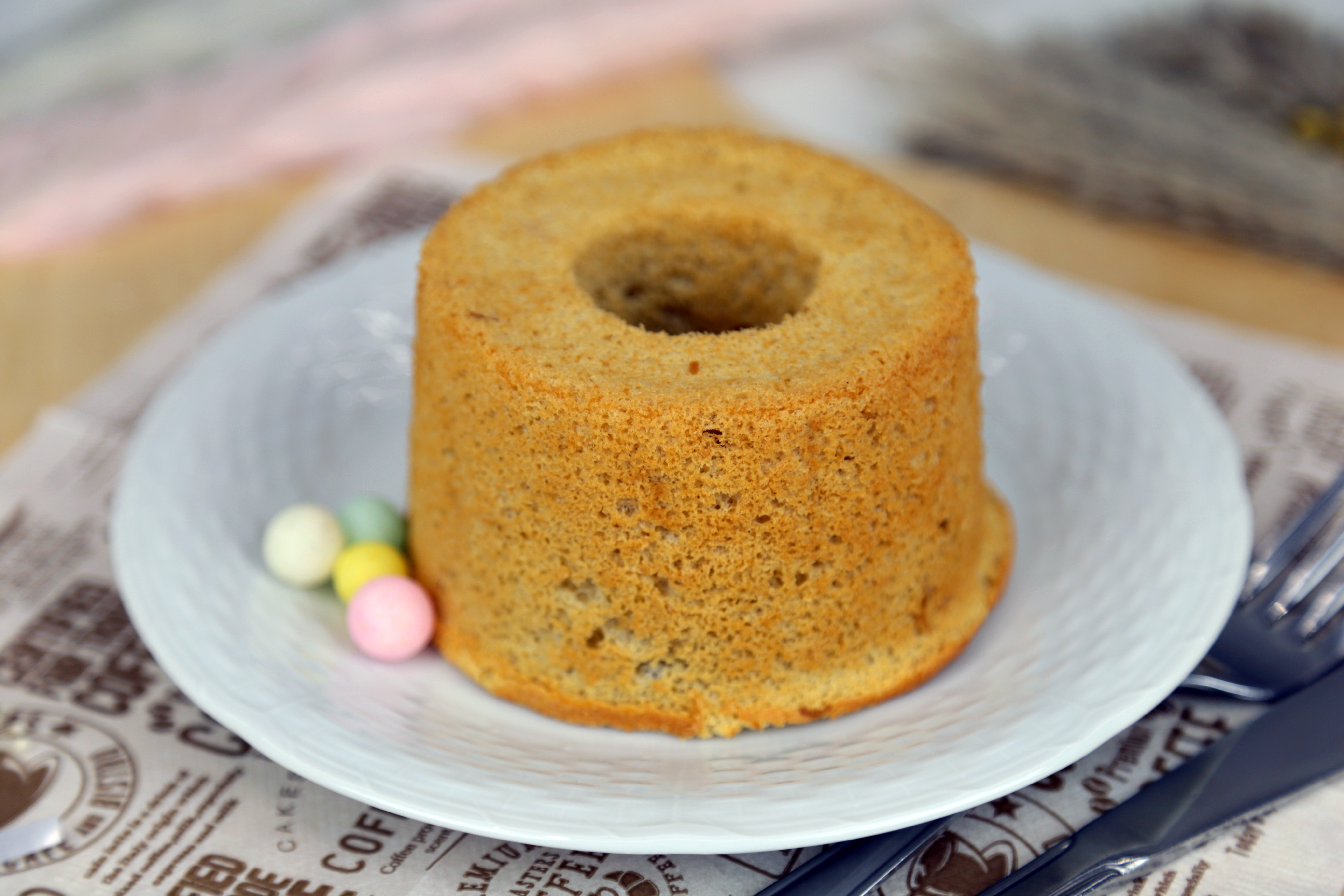 エスプレッソをダブル(コーヒー液と粉)でいれて焼いています。コーヒー本来の薫り、コク、美味しい苦味の広がるシフォンケーキです。