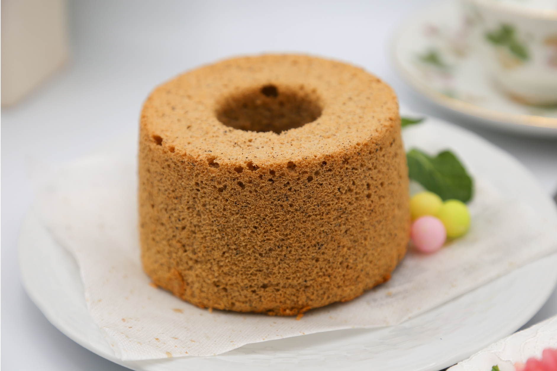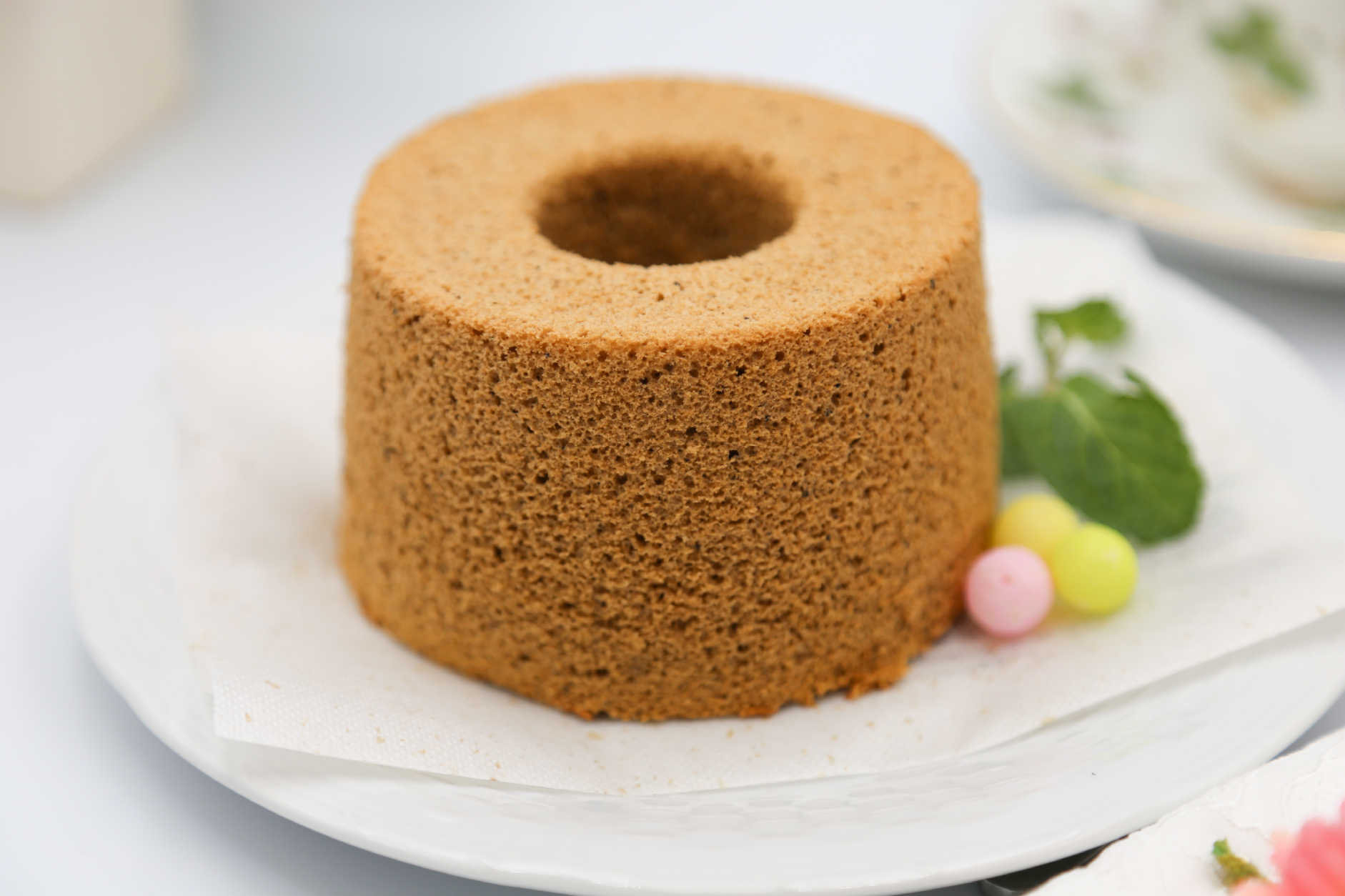 ベルガモットの薫りの紅茶の茶葉とパウダーで焼いたシフォンケーキです。茶葉をミキサーで細かく砕いていれています。